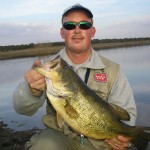 Pasaron 3 minutos y en otro de los lances, Iñaki empieza a chillar de nuevo: ¡tocho, tocho! Me acerqué y vi como la caña se doblaba, empezó a saltar y le vi el cabezón que tenía. Yo estaba flipando, después de la lucha arrima el pez a la orilla y lo coge con la mano. Cuando lo levantó y lo vi, dije: ¡Vaya tarugo, Iñaki! Él estaba eufórico, no era para menos, cogí la báscula y se lo pesé, dió 2.910 kg. ¡Qué buen bass! Después de unas buenas fotos, al agua.