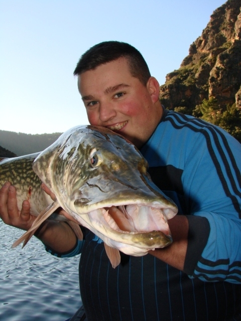 Eran las 15:30h de la tarde cuando llegó el momento más esperado por mi durante años, en lo que se refiere a la pesca del lucio. Tras muchos lucios grandes perdidos, lucios que hace años fui incapaz de sacar, peces tremendos, al menos hasta entonces habia tenido 4 lucios de esas dimensiones al otro extremo del hilo, pero que nunca fui capaz de sacar. Por fin cambio esa mala suerte y un lance a un cortado de piedra con el mogambo mágico en color rainbow trout con jig head de 18 gramos, ahí estaba ese pez de 11.500 kg.